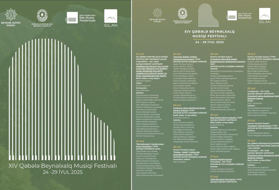 Heydər Əliyev Fondunun təşəbbüsü və təşkilatçılığı, Mədəniyyət Nazirliyi, Üzeyir Hacıbəyli adına Bakı Musiqi Akademiyası və “Gilan”ın dəstəyi ilə bu gün, iyulun 24-də axşam saatlarında XIV Qəbələ Beynəlxalq Musiqi Festivalına start veriləcək. Gözəl bir ənənəyə çevrilən festival iyulun 29-dək davam edəcək. Dahi bəstəkar Üzeyir Hacıbəylinin 140 illik yubileyi çərçivəsində keçiriləcək festivalda Azərbaycandan və xarici ölkələrdən tanınmış ifaçılar, gənc istedadlar, musiqi kollektivləri iştirak edəcəklər. Festival çərçivəsində, həmçinin görkəmli musiqi xadimləri Rauf Atakişiyevin 100, Vasif Adıgözəlovun 90 illik yubileyləri də xüsusi konsert proqramları ilə qeyd ediləcək.