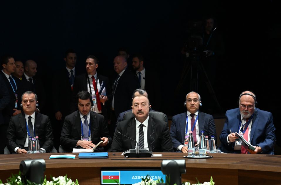 Sonra Azərbaycan Prezidenti İlham Əliyev Zirvə görüşündə çıxış etdi.