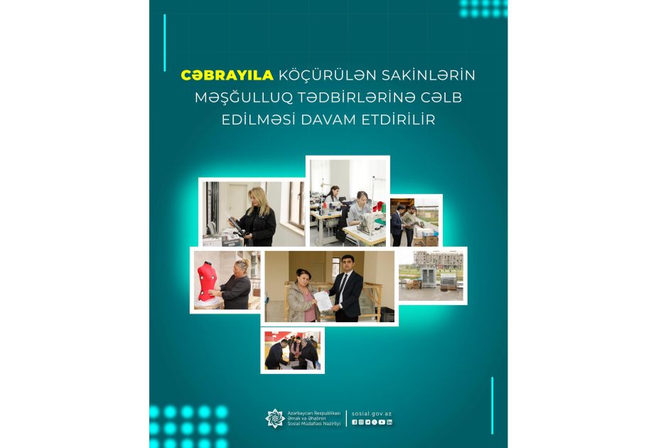 Əmək və Əhalinin Sosial Müdafiəsi Nazirliyinin tabeliyində Dövlət Məşğulluq Agentliyi Cəbrayıl şəhərinə köçürülmüş sakinlərdən artıq 686 şəxsi məşğulluq tədbirlərinə cəlb edib.