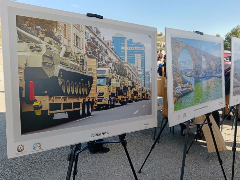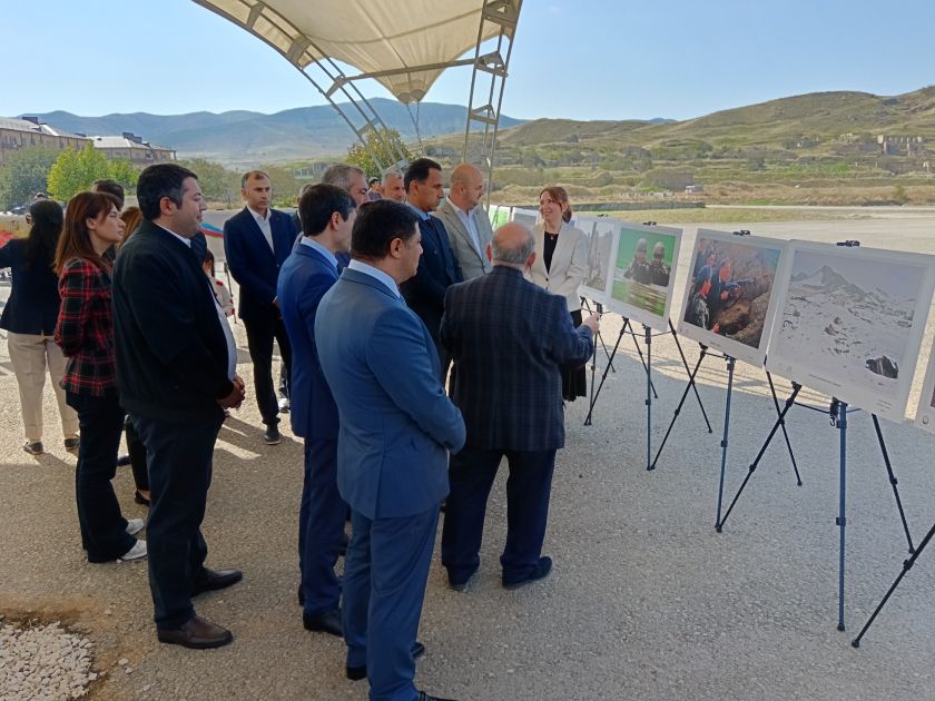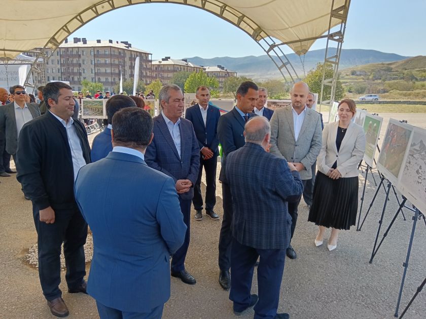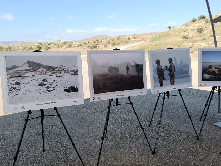 AZƏRTAC-ın bölgə müxbiri xəbər verir ki, əvvəlcə Cəbrayıl Şəhəri Gününə həsr edilən "Qarabağ - obyektivdən tarixə" adlı sərgiyə baxış keçirilib. Fotosərgidə Qarabağa, Azərbaycan Silahlı Qüvvələrinə və Cəbrayıla həsr olunan fotolar yer alıb.