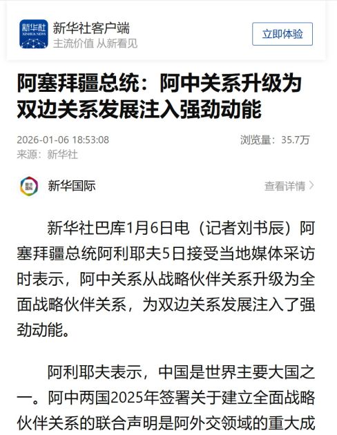 Çinin milli xəbər agentliyi Sinxuanın Azərbaycan Prezident İlham Əliyevin yerli televiziya kanallarına müsahibəsi zamanı Azərbaycan-Çin münasibətlərinə dair fikirləri haqqında xəbərləri Çin mediasında geniş yayılıb.