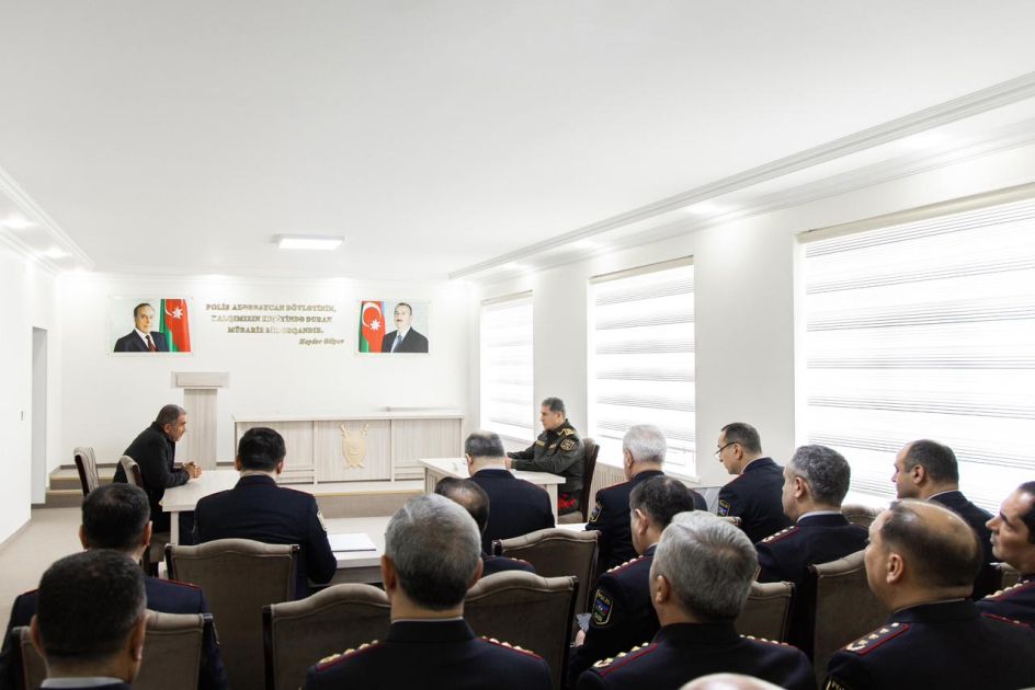Səfər çərçivəsində general-polkovnik Vilayət Eyvazov polis və daxili qoşunlarda xidmət etmək arzusunda olan gənclərin sıra baxışını keçirib.