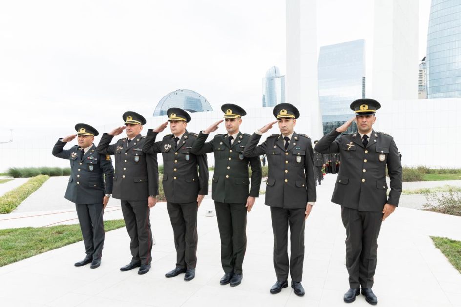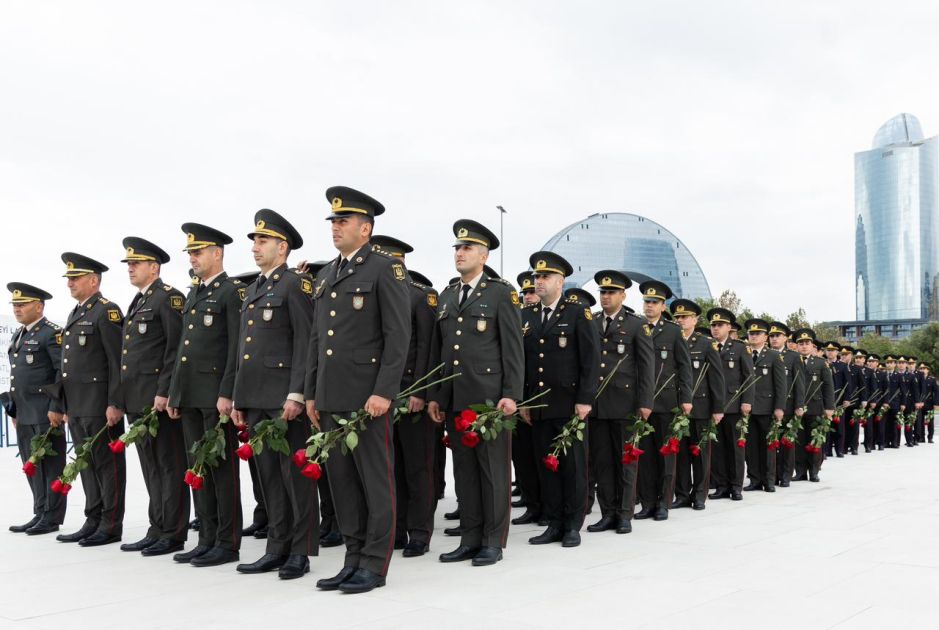 DİN-in mətbuat xidmətindən AZƏRTAC-a bildirilib ki, şəxsi heyət xatirə daşının önünə gül dəstələri düzüb.