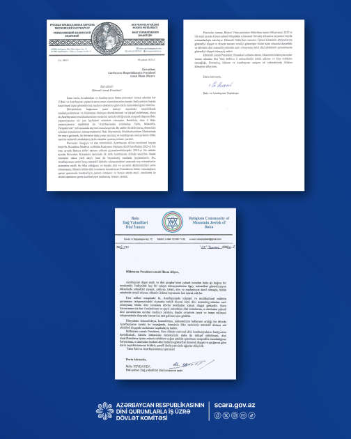 Dini konfessiya rəhbərləri Prezident İlham Əliyevə təşəkkür məktubları ünvanlayıblar.