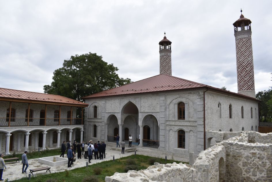 Azərbaycanın xarici ölkələrdə akkreditə olunmuş diplomatik nümayəndəlik və konsulluqlarının rəhbərləri sonra Aşağı Gövhər Ağa məscidinə gəlib. Məlumat verilib ki, Şuşa şəhəri işğal altında olduğu illərdə erməni vandalizminə məruz qalmış Aşağı Gövhər Ağa məscidində aparılan bərpa işləri başa çatıb. XIX əsrdə Kərbəlayi Səfixan Qarabağinin memarlığı ilə ərsəyə gələn Aşağı Gövhər Ağa məscidi İbrahim xanın qızı Gövhər Ağa tərəfindən Şuşada inşa etdirilmiş məscidlərdən birincisi sayılır. Aşağı Gövhər Ağa məscidi şəhərin tarixi-memarlıq rəmzlərindən biridir.