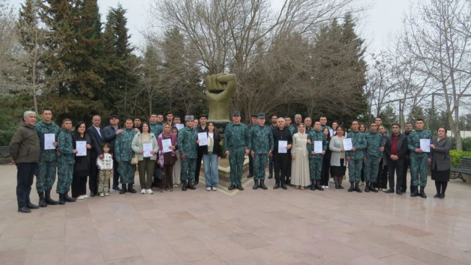 Sonda xidmətdə fərqlənən bir qrup hərbi qulluqçuya valideynlərin iştirakı ilə fəxri fərman təqdim olunub.