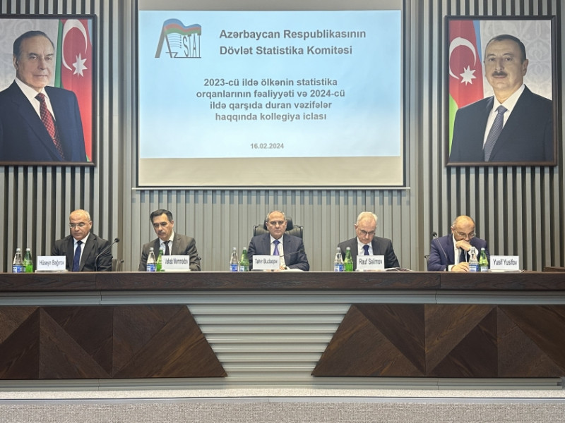 Dövlət statistika orqanlarının 2023-cü ildəki fəaliyyəti və 2024-cü ildə qarşıda duran vəzifələrlə bağlı fevralın 16-da Dövlət Statistika Komitəsi aparatı şöbələrinin, Naxçıvan Muxtar Respublikası Dövlət Statistika Komitəsi, şəhər və rayon statistika idarələrinin rəhbərlərinin iştirakı ilə geniş kollegiya iclası keçirilib.
