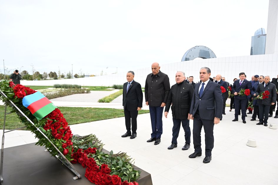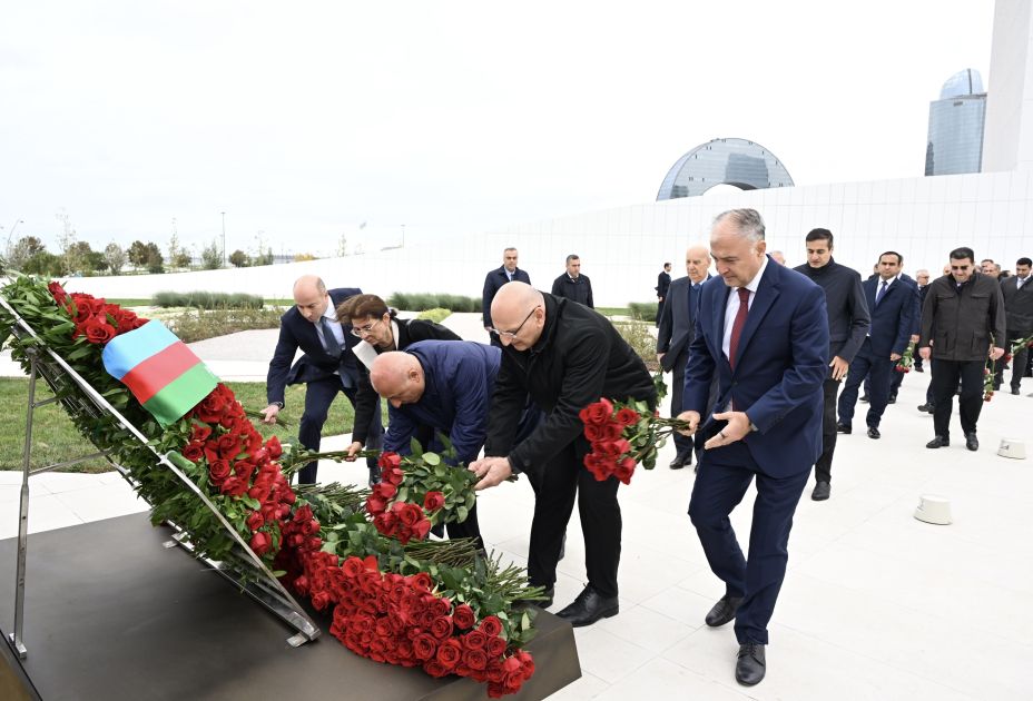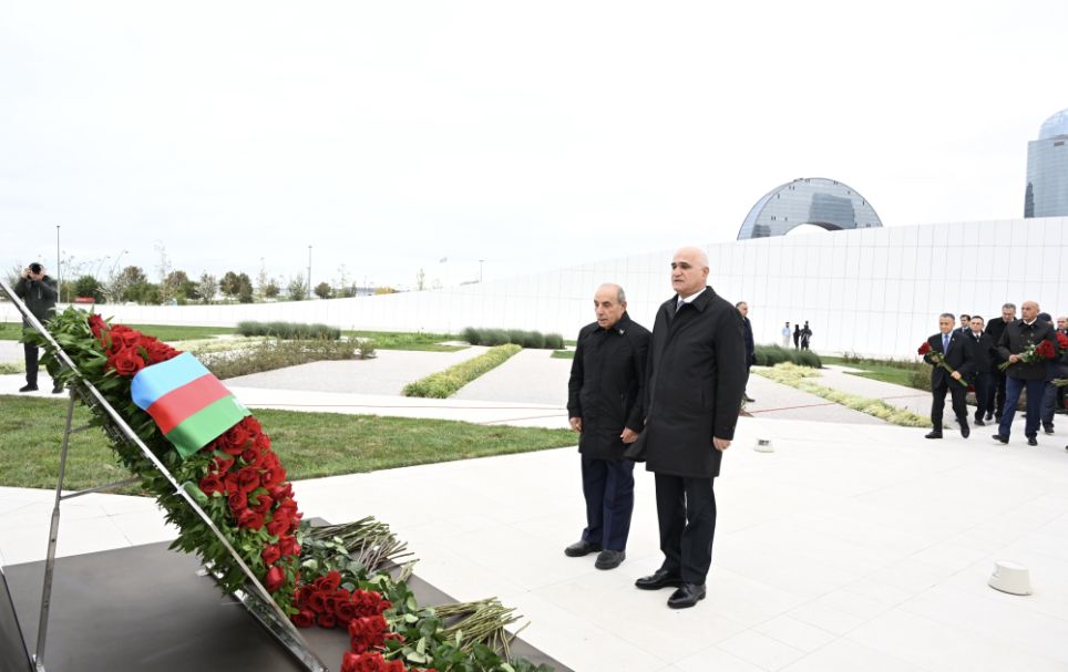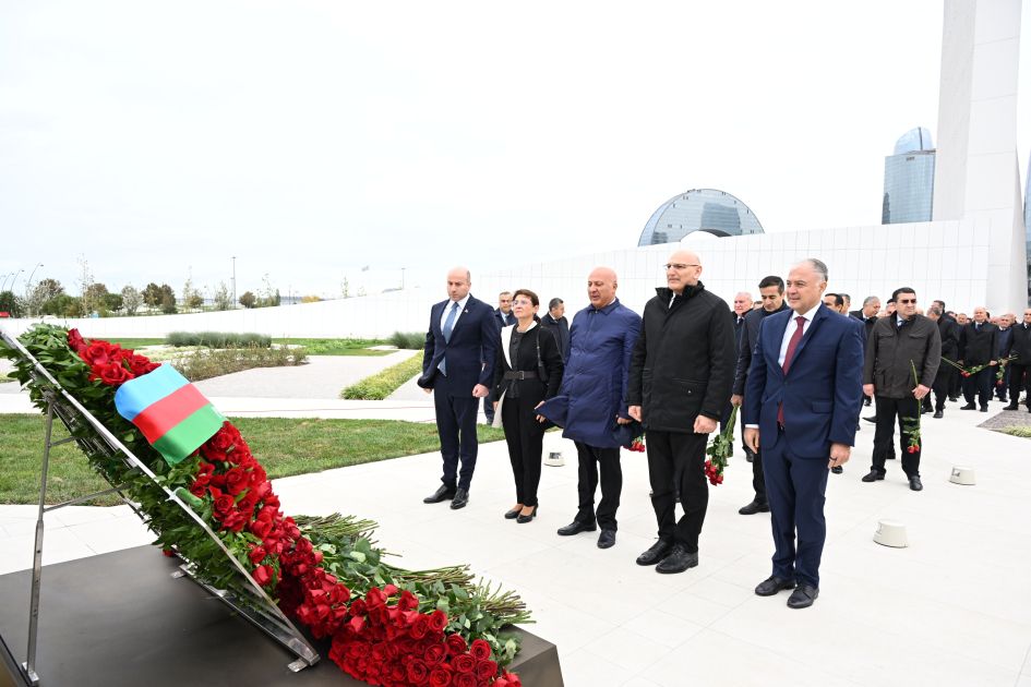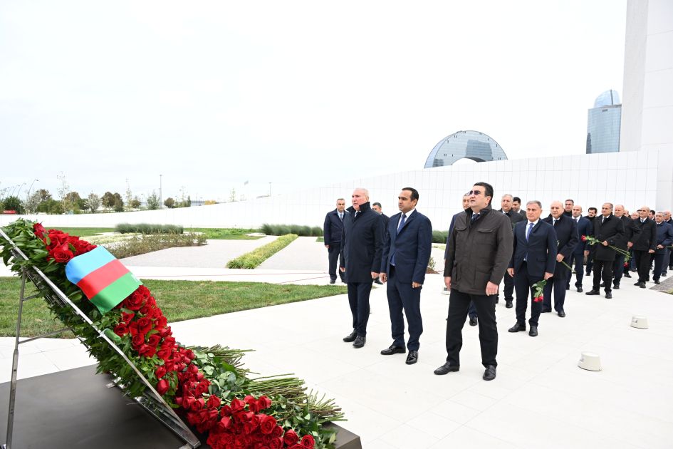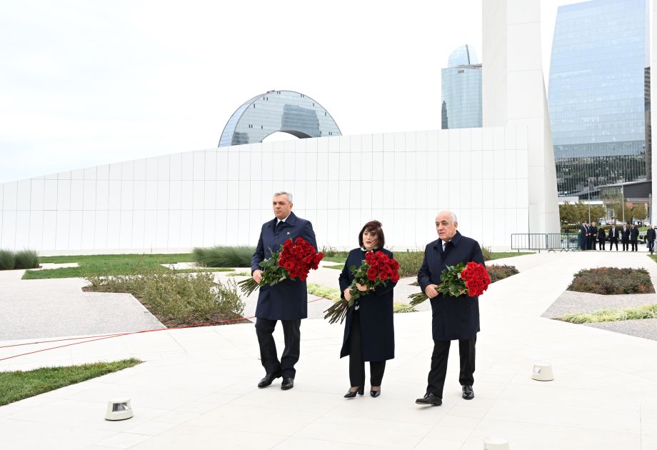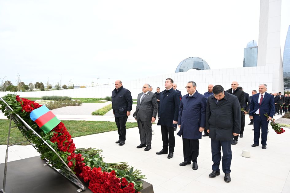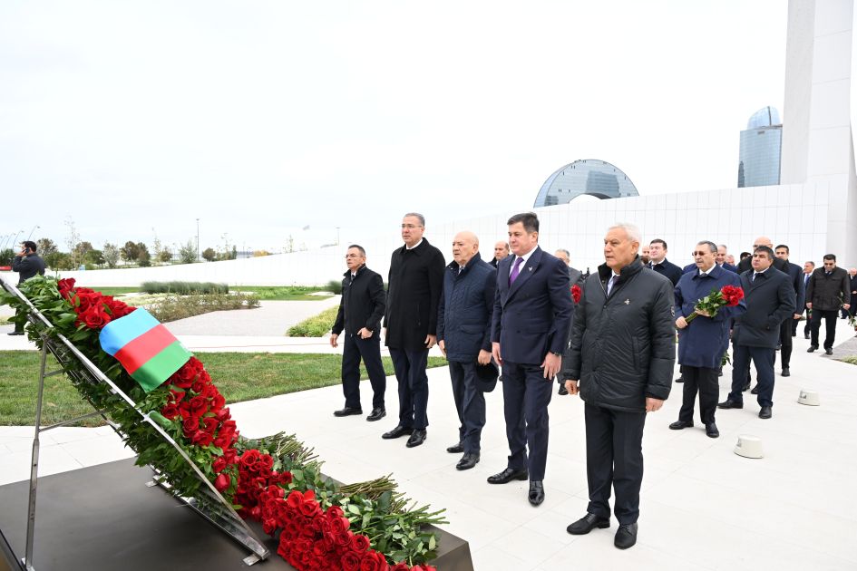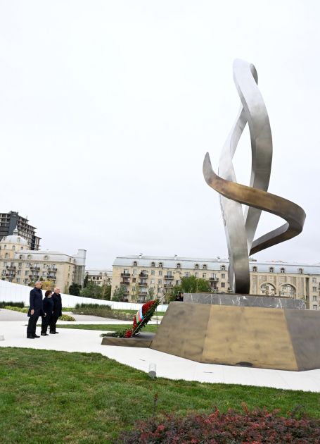 AZƏRTAC xəbər verir ki, dövlət və hökumət rəsmiləri xatirə daşının önünə gül dəstələri düzərək şəhidlərin əziz xatirəsini ehtiramla anıblar.