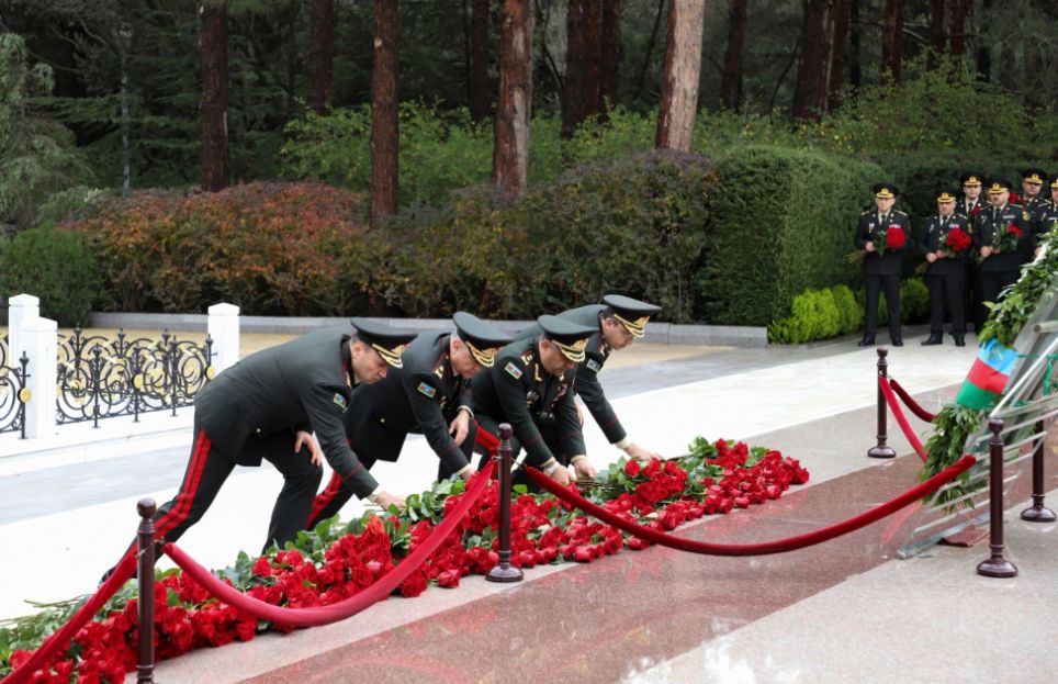 Müdafiə Nazirliyinin rəhbərliyi Ulu Öndərin məzarını ziyarət edib