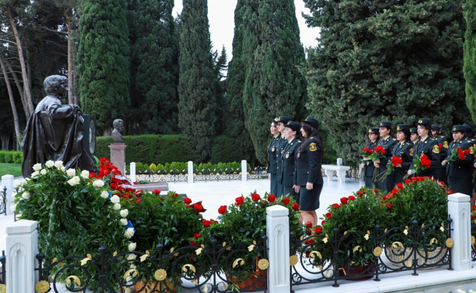 Dövlət Xidmətinin qadın hərbi qulluqçuları akademik Zərifə Əliyevanın məzarını ziyarət ediblər