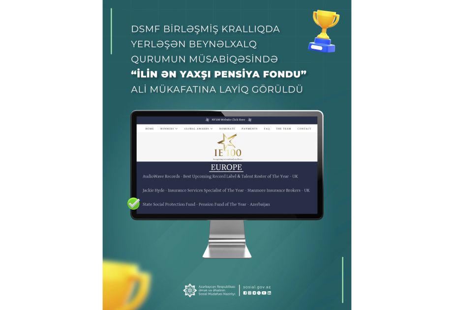 Əmək və Əhalinin Sosial Müdafiəsi Nazirliyinin tabeliyində Dövlət Sosial Müdafiə Fondu (DSMF) “The International 100 Awards 2025” beynəlxalq müsabiqəsində uğur qazanıb.