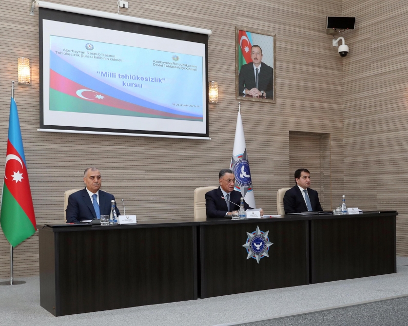 Oktyabrın 25-də Azərbaycan Respublikası Dövlət Təhlükəsizliyi Xidmətinin (DTX) Beynəlxalq Antiterror Təlim Mərkəzində Azərbaycan Respublikasının Təhlükəsizlik Şurası katibinin xidmətinin təşkilatçılığı ilə “Milli təhlükəsizlik” mövzusunda kursun açılış mərasimi keçirilib.