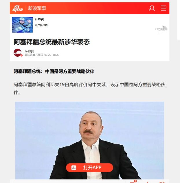 Çinin “Sina”, “Finance.sina”, “Quança”, “163.com” və digər qəzet və portallarında dərc olunan məqalələrdə qeyd olunub ki, Prezident İlham Əliyev bir neçə gün öncə ümumvətəndaş pasportları ilə Çinə səfər etmək istəyən Azərbaycan vətəndaşları üçün viza rejiminin tamamilə aradan qaldırıldığı, Azərbaycanın isə bir il əvvəl Çin vətəndaşları üçün viza rejimini ləğv etdiyi barədə məlumat verib, bu addımın xalqlarımız, tələbələrimiz və iş adamlarımız arasında təmasların daha da intensivləşməsinə səbəb olacağını vurğulayıb.