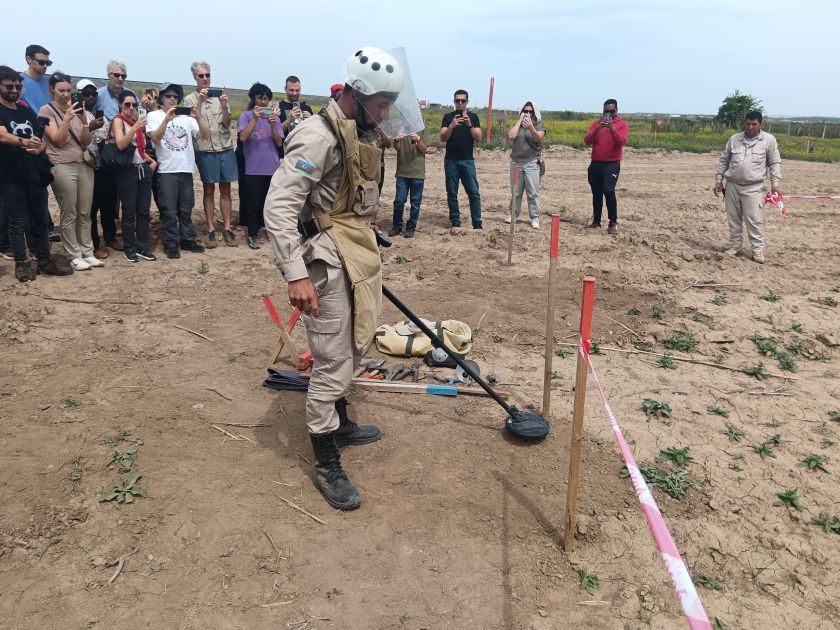 AZƏRTAC-ın bölgə müxbiri xəbər verir ki, burada səyyahlar işğaldan azad edilən Mehdili kəndi ərazisində ANAMA tərəfindən aparılan minatəmizləmə işləri ilə tanış olublar. Onlara işğal zamanı ərazilərin həddən çox minalarla çirkləndirilməsi barədə, həmçinin ötən dövrdə mina təhlükəsi nəticəsində həlak olanların və sağlamlığını itirənlərin olduğu haqda məlumat verilib. Ərazilərdə tank əleyhinə minaların, piyada əleyhinə minaların, həmçinin qarışıq mina xətlərinin çox olduğu bildirilib. Bundan başqa, axtarış vaxtı ərazidə partlamamış silah-sursatlar da aşkarlandığı deyilib. Qeyd edilib ki, aşkarlanan piyada əleyhinə minaların əsas tərkib hissəsi Ermənistan istehsalıdır. Səyyahlara, həmçinin məlumat verilib ki, ərazidə təmizləmə işləri mexaniki üsulla, əl ilə və təlim keçmiş itlər vasitəsilə olmaqla üç üsulla aparılır.