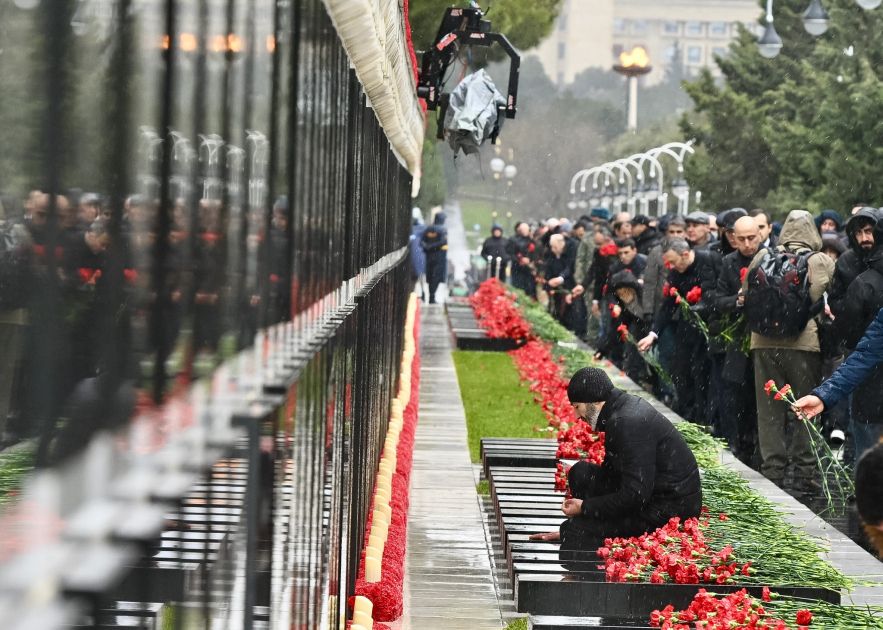 Havanın soyuq və şaxtalı olmasına baxmayaraq, Şəhidlər xiyabanının ətrafında izdiham yaşanır. Göydən ələnən yağış damcılarını arada qar dənəcikləri əvəz edir. Həmin gecənin qurbanları böyük iradə və yüksək dəyanət nümayiş etdirərək öz sinələrini avtomat güllələrinin, tank mərmilərinin qabağına verərək azadlıq yolunun ilk şəhidləri kimi adlarını tarixə həkk etdilər. Qanlı şənbə gecəsinin qurbanları bu yolda azadlıq mücahidlərinə, xalqımızın mübarizlik və qəhrəmanlıq simvollarına çevrildilər. Ziyarətçilərin arasıkəsilməz axını onların Vətən qarşısındakı fədakarlığına və cəsurluğuna verilən yüksək dəyər, sevgi, hörmət və ehtiram duyğularının parlaq təzahürüdür. Başdan-başa qərənfillərə bürünmüş xiyabanda onların uyuduğu məzarlar qərənfil yağışına tutulur. Əbədiyyət ünvanına üz tutan ziyarətçi axını azadlıq və müstəqillik yolunun ilk şəhidlərinin çiçək qədər təravətli, yağış qədər təmiz hisslərini paylaşır.