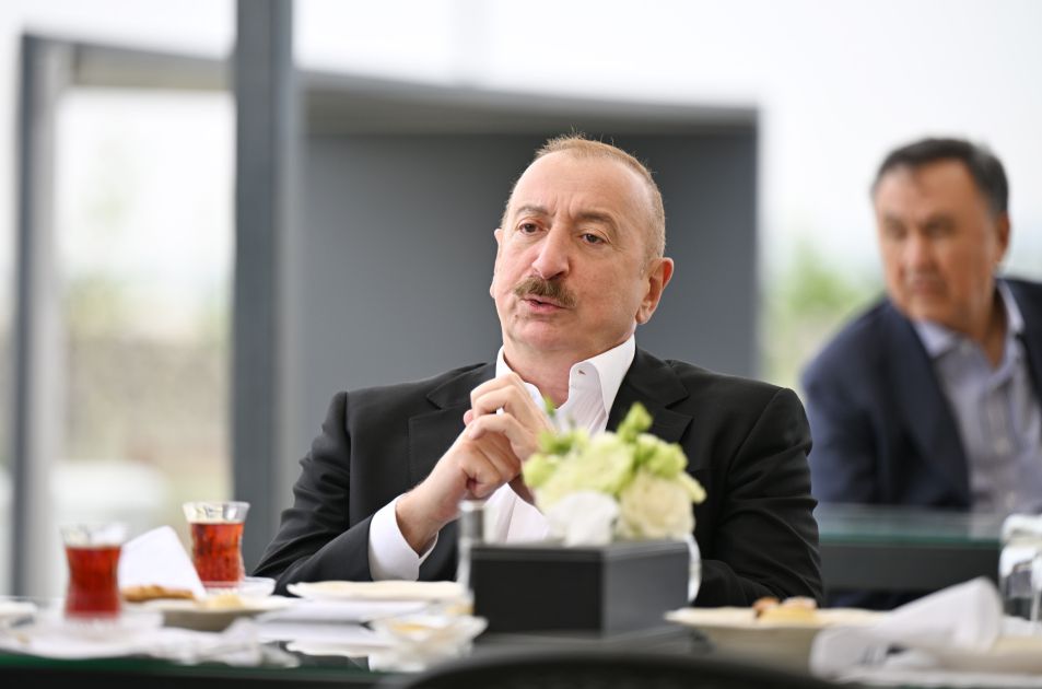 AZƏRTAC xəbər verir ki, əvvəlcə Azərbaycan Prezidenti və qonaqlar çay süfrəsi arxasında söhbət etdilər.