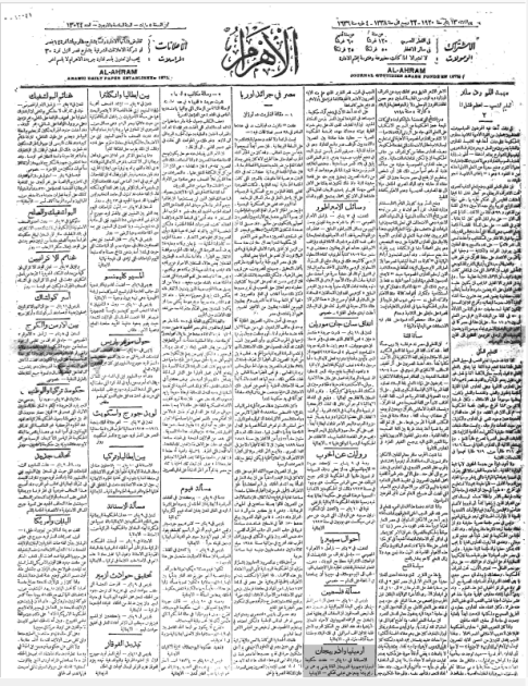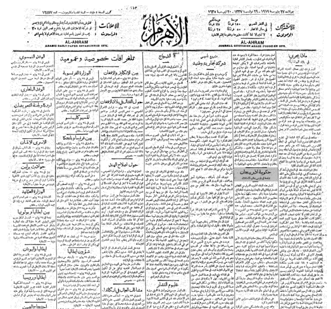 Bu yaxınlarda 150 illiyini qeyd edəcəyimiz “əl-Əhram” qəzeti ilk saylarından dünya ölkələrində baş verən hadisələr barədə xəbərlər dərc edib. 1875-ci ildə təsis edilən gündəlik qəzetin birinci sayı 1876-cı il avqustun 5-də işıq üzü görüb. Bu vaxtdan ölkəmiz və orada baş vermiş mühüm hadisələr qəzetimizin daim maraq dairəsində olub.