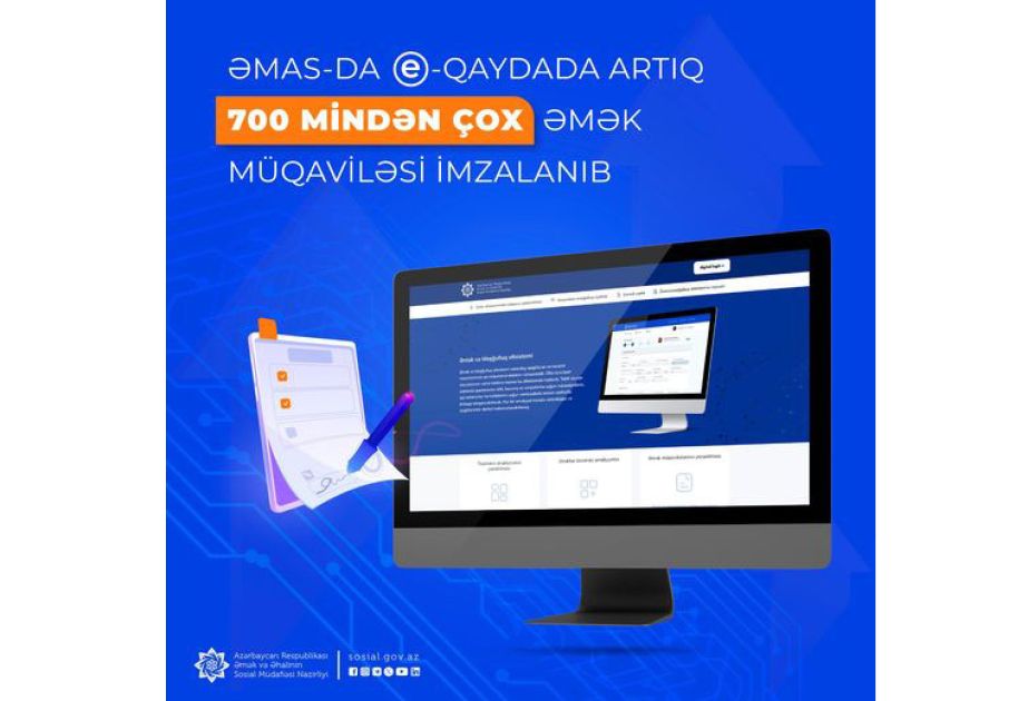 Nazirliyin İctimaiyyətlə əlaqələr şöbəsindən "Azərbaycan" qəzetinə verilən məlumata görə, ƏMAS-da işçi və işəgötürənlər tərəfindən e-qaydada artıq 700 mindən çox əmək müqaviləsi imzalanıb. Əmək müqavilələrinin e-sənəd formasında bağlanması ilə yanaşı, əmək müqaviləsinin dəyişdirilməsi və ya ona xitam verilməsi də e-qaydada icra olunur.