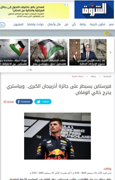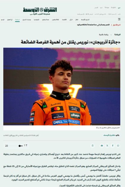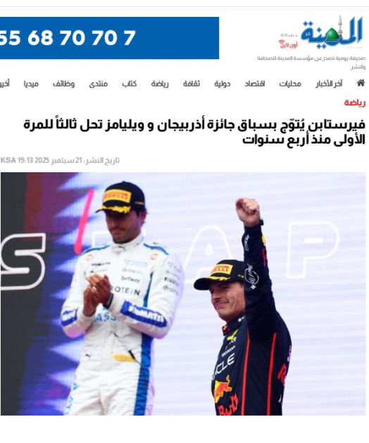 Ərəb ölkələrinin “Əş-Şarq əl-Avsət”, “əl-Arabiyyə”, “əl-Əhram”, “əş-Şuruq”, “əl-Nəhar”, “Masravi”, “əl-Mədinə” və digər mötəbər media orqanları Formula 1 üzrə Azərbaycan Qran-Prisindən yazıb.