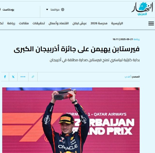Ərəb mediası Formula 1 üzrə Azərbaycan Qran-Prisindən yazıb