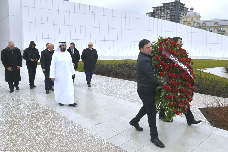 AZƏRTAC xəbər verir ki, səfər çərçivəsində nümayəndə heyəti Bakıda Zəfər parkını ziyarət edərək abidə önünə əklil qoyub.