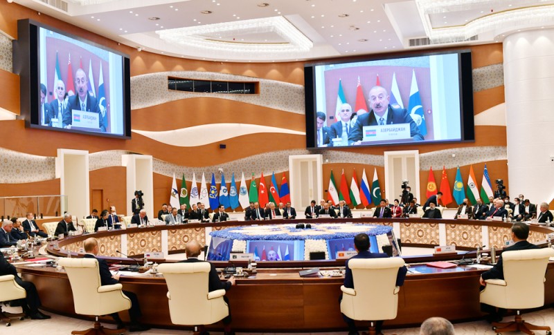Prezident İlham Əliyev Səmərqənddə Şanxay Əməkdaşlıq Təşkilatına üzv ölkələrin sammitindəki çıxışında Azərbaycanın tranzit və nəqliyyat-logistika imkanlarının davamlı olaraq inkişaf etdiyindən danışmış, "Şərq-Qərb" və "Şimal-Cənub" nəqliyyat dəhlizləri kimi regional kommunikasiya layihələrinin işə düşməsinə ölkəmizin sanballı töhfələrini qeyd etmişdir.