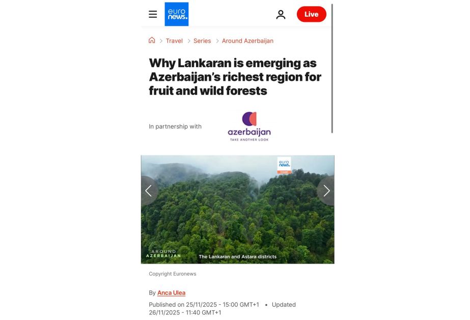 “Euronews” kanalında Lənkəranın təbiəti və aqrar potensialı haqqında süjet yayımlanıb