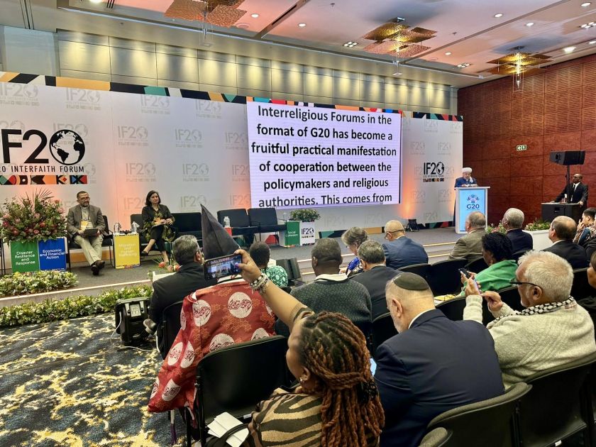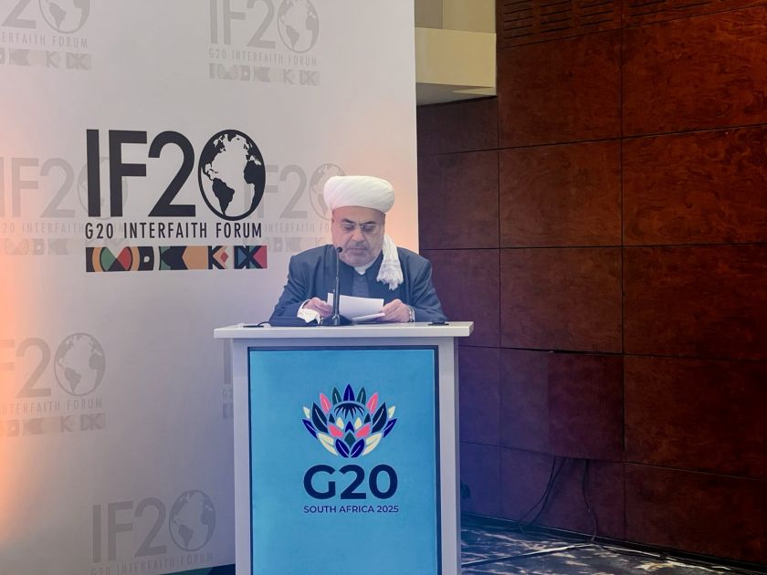 Forumun prezidenti Kol Dürhamın dəvəti ilə tədbirdə iştirak edən şeyxülislam A.Paşazadə açılış plenar iclasında çıxış edib. Cənubi Afrika Respublikasının G20-də sədrliyi çərçivəsində təşkil edilən tədbirə dəvətə görə minnətdarlığını bildirən QMİ sədri Forum iştirakçılarına Azərbaycan Prezidenti İlham Əliyevin salamlarını və xeyir-dualarını çatdırıb.