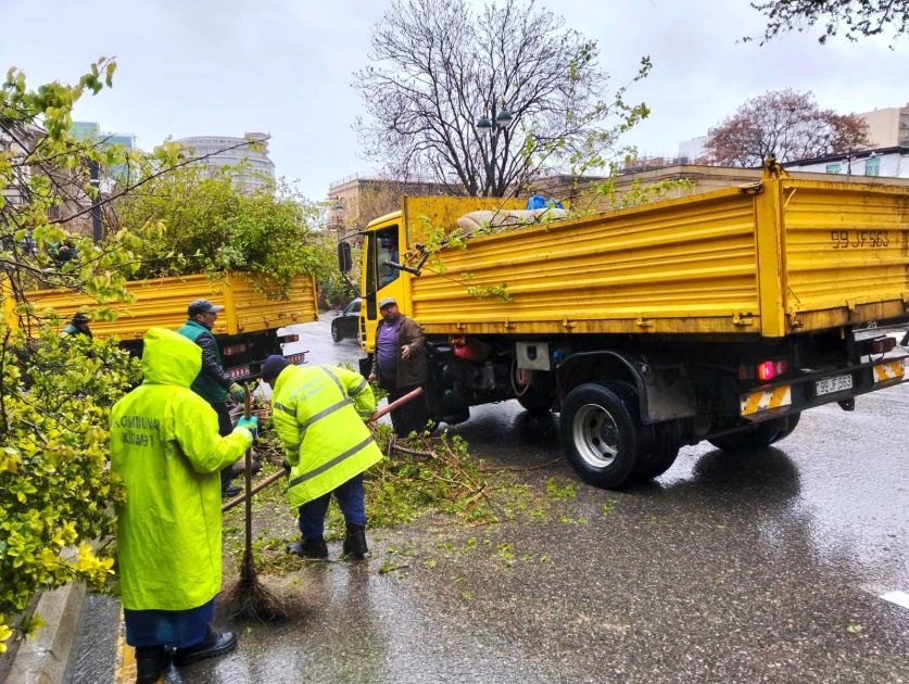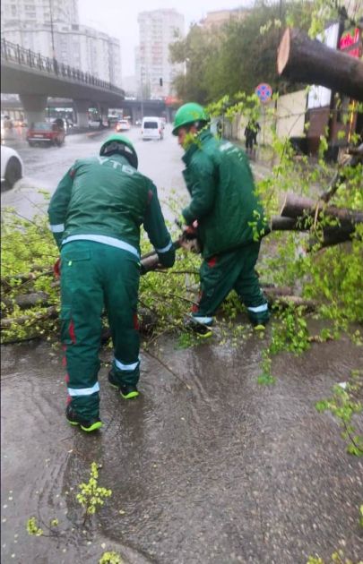 Birliyin əməkdaşları tərəfindən qırılan ağaclar kəsilib, zədələnənlər budanıb, ərazi təmizlənib.