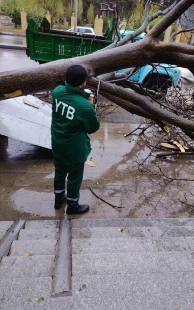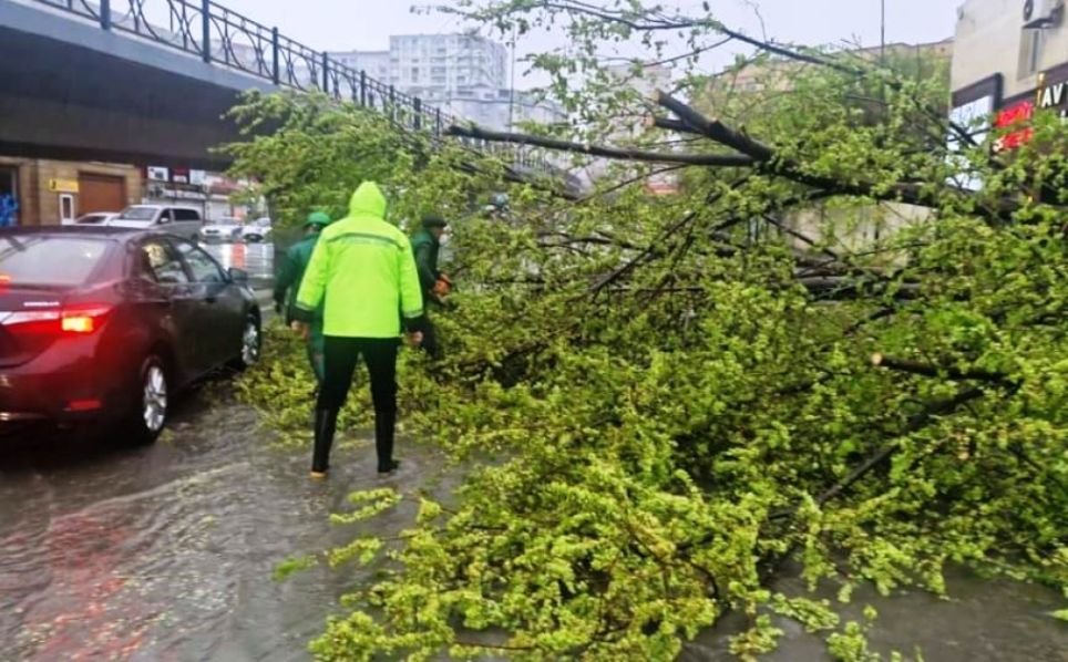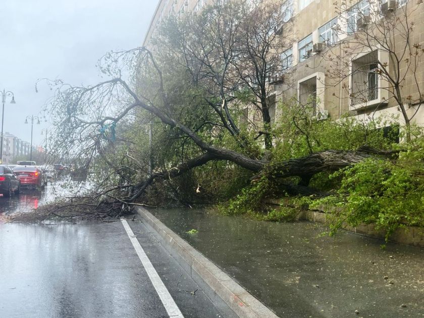 Güclü külək nəticəsində paytaxtda 55 ağac sınıb, 15-dən çox ağacın budaqları qırılıb