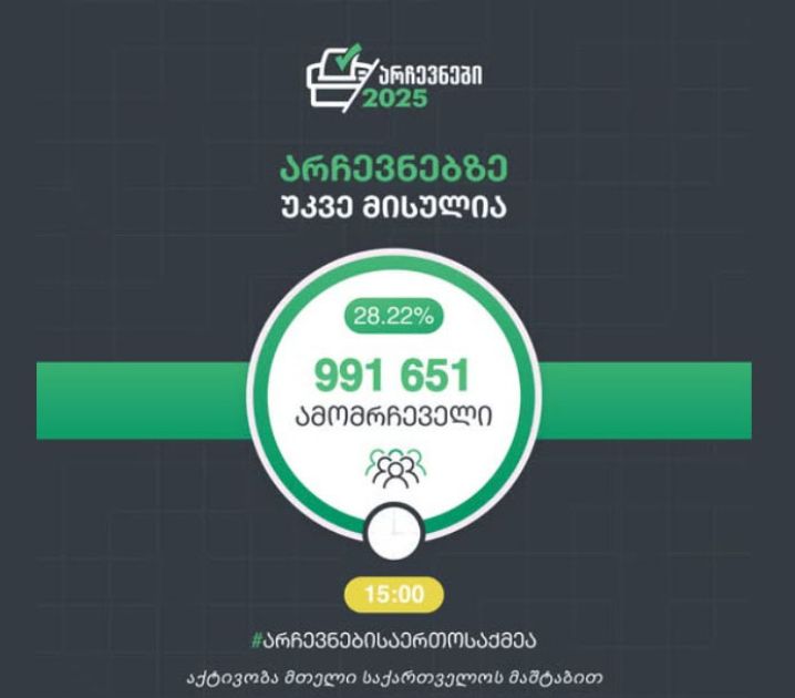 Gürcüstan Mərkəzi Seçki Komissiyasının saat 17:00-a olan son məlumatına əsasən, seçici fəallığı 33,5% təşkil edib.