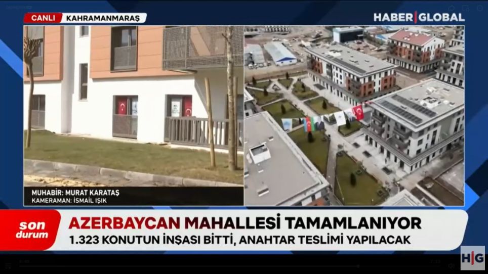 AZƏRTAC xəbər verir ki, süjetdə Azərbaycan hökumətinin dəstəyi ilə Onikişubat rayonunda tikilən yeni yaşayış massivində 1323 mənzilin tikintisinin artıq başa çatdırıldığı, bəzi binaların inşasının davam etdiyi qeyd olunur. Eyni zamanda, ilk sahiblər tezliklə yeni mənzillərin açarlarını alacaqlar.