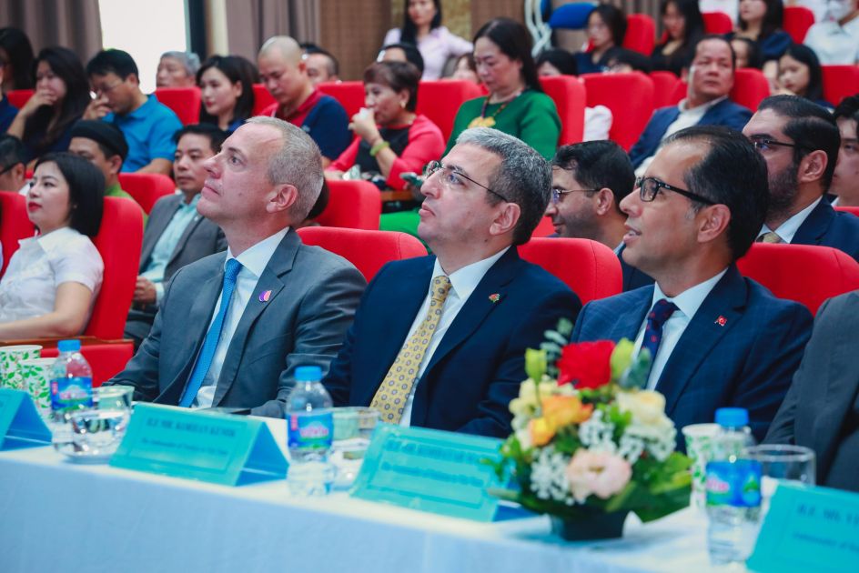 AZƏRTAC xəbər verir ki, ikitərəfli əlaqələrin möhkəmləndirilməsi və Azərbaycan mədəniyyətinin və turizm potensialının Vyetnamda tanıdılması məqsədilə təşkil olunan tədbirə Azərbaycan Turizm Bürosunun icraçı direktoru Florian Zenqstşmid, Vyetnam Milli Turizm Qurumunun sədr müavini xanım Nquyen Ti Hoa May, səfirlər, turizm mütəxəssisləri, Vyetnamın müxtəlif qurumlarından nümayəndələr və kollecin tələbələri qatılıblar.