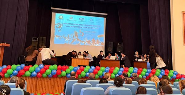 Əvvəlcə iştirakçılar foyedə filmin çəkilişi zamanı istifadə olunan geyim və tarixi əşyaların sərgiləndiyi guşə ilə tanış olublar.