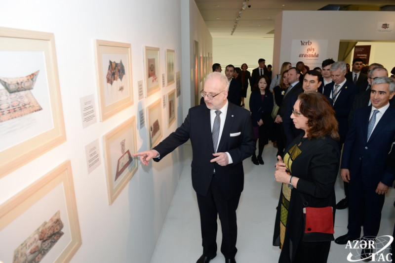 Martın 9-da Heydər Əliyev Mərkəzində “Yerlə göy arasında” Azərbaycan-Latviya birgə incəsənət sərgisinin açılışı olub.