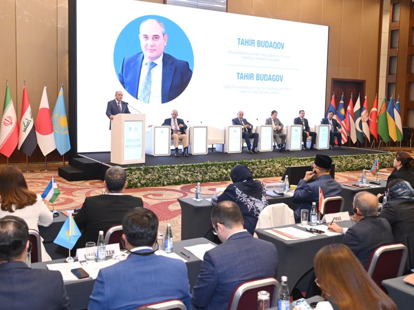 Çıxış edən Yeni Azərbaycan Partiyası Sədrinin müavini – Mərkəzi Aparatın rəhbəri Tahir Budaqov vurğulayıb ki, müasir dövrdə beynəlxalq münasibətlər sistemində ciddi geostrateji dəyişikliklər baş verməkdədir. Onun sözlərinə görə, qlobal kataklizmlər, çoxsaylı təhdid və çağırışlar fonunda yeni dünya nizamına transformasiya məsələsi aktual müzakirə predmetinə çevrilib: “Dünyada hərbi-siyasi konfrontasiyaların, humanitar böhranların, dini və etnik müstəvidə bir çox ziddiyyətlərin yaşandığı bir dönəmdə müxtəlif mədəniyyətlərin daşıyıcısı olan xalqlar arasında sabitlik və tərəqqi naminə dialoq prosesi ümumbəşəri dəyərlərin qorunması və ölkələrin təhlükəsizliyi baxımından müstəsna əhəmiyyət kəsb edir”.