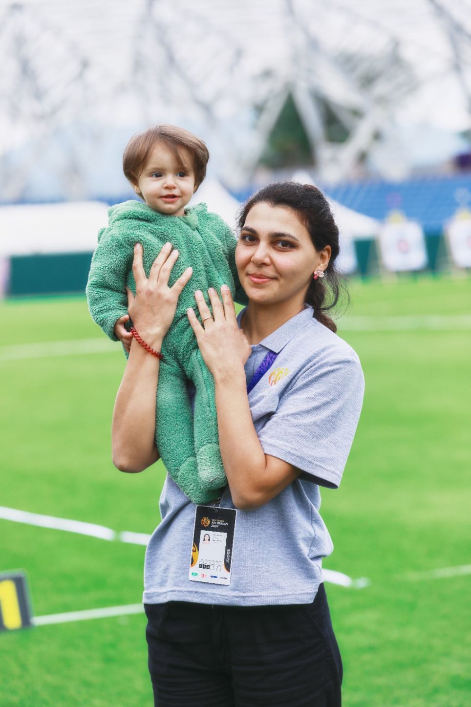 Xankəndi şəhər stadionunda kamandan oxatma yarışları keçirilir. Azərbaycanın kamandan oxatanı Yaylaqül Ramazanova III MDB Oyunları çərçivəsində təşkil olunan oxatma yarışlarında bu dəfə hakim qismində iştirak edib — balaca qızı da onunla birgə olub.