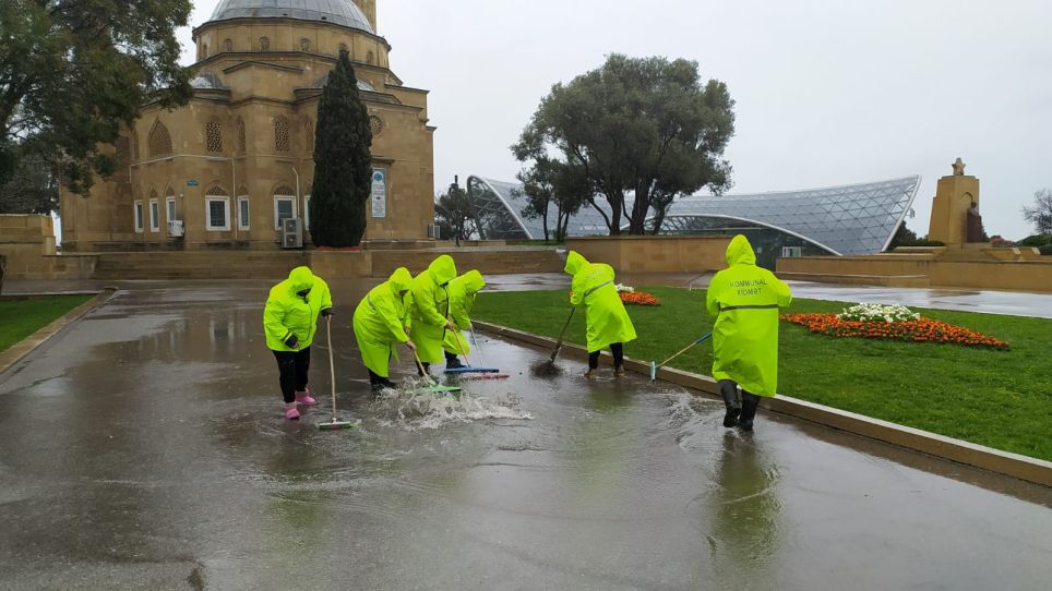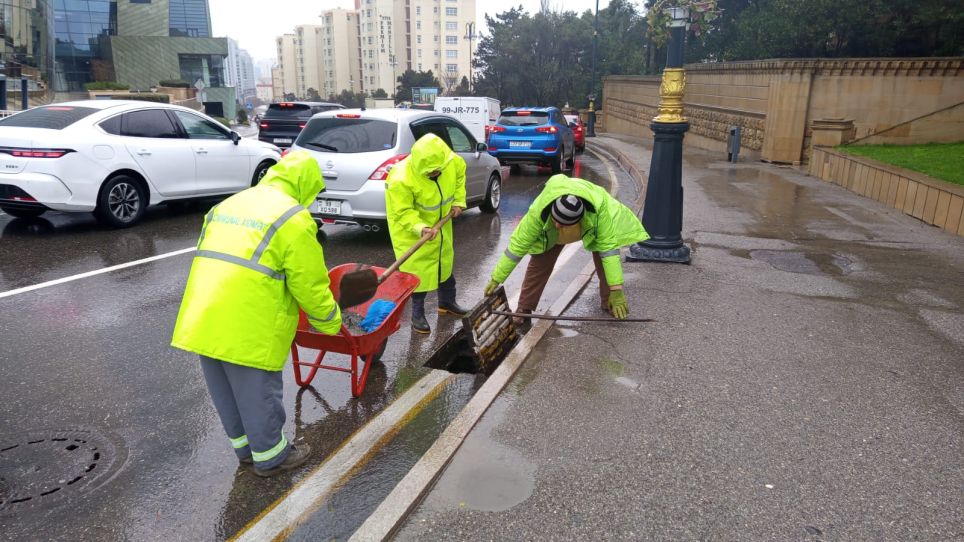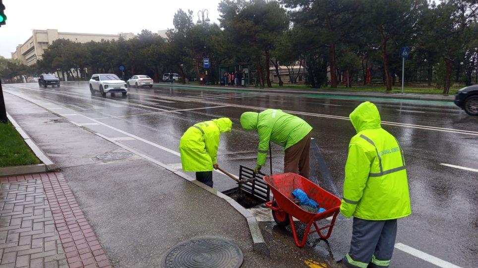 Xüsusilə yağış sularının normal axını üçün su barmaqlıqları və drenaj xətləri operativ təmizləyib açırlar. Aparılan operativ müdaxilələr nəticəsində Şəhidlər Xiyabanı yağış sularından təmizlənib. Bununla yanaşı, məhəllə aralarında yaranmış problemlər də anında aradan qaldırılır.