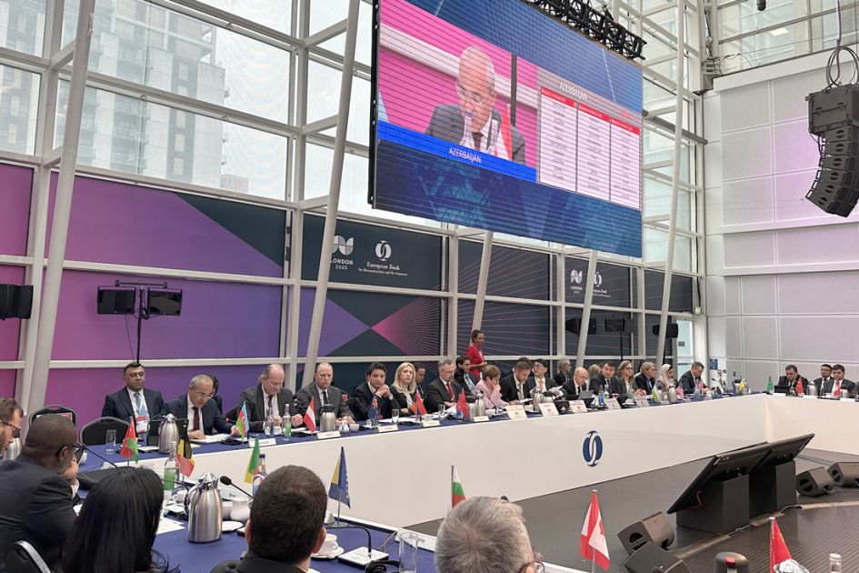 Nazir Mikayıl Cabbarov Avropa Yenidənqurma və İnkişaf Bankının İllik Toplantısı çərçivəsində bankın Müdirlər Şurasının açılış sessiyasında iştirak edib. Sessiya zamanı qlobal çağırışlar şəraitində iqtisadi resursların effektiv istifadəsi, iqlim fəaliyyətini dəstəkləyən infrastrukturun formalaşdırılması, rəqəmsal transformasiya, müasir biznes həllərinə investisiyalar, sənaye siyasəti və sosial təhlükəsizliklə bağlı qabaqcıl təcrübələr və potensial imkanlar müzakirə olunub.