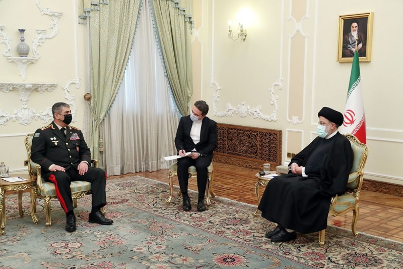 Müdafiə Nazirliyinin mətbuat xidmətindən AZƏRTAC-a bildiriblər ki, İran Prezidenti Seyid İbrahim Rəisi xalqlarımızın əsrlər boyu mehriban qonşuluq şəraitində yaşadığını, Azərbaycan-İran ikitərəfli münasibətlərinin bütün sahələrdə uğurla inkişaf etdiyini diqqətə çatdırıb.