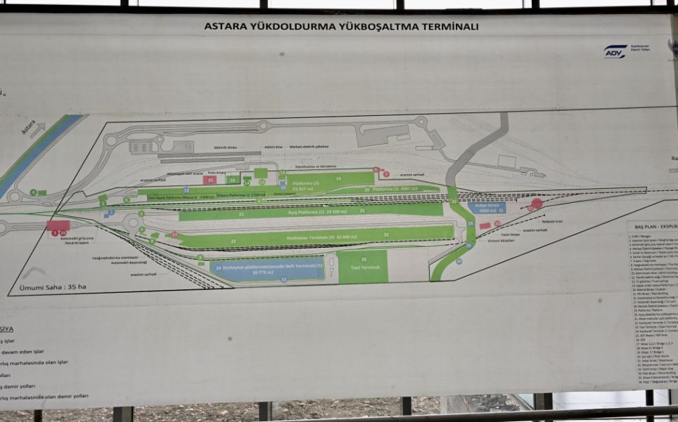“Azərbaycan Dəmir yolları” QSC-nin İran Astarasında tikdiyi Cənub Yük Terminalına baxış zamanı qeyd olunub ki, texniki işlərin 94, tikinti işlərinin isə 81 faizi başa çatdırılıb. Terminalda 5000 kvadrat metr qapalı və açıq anbarlar, taxıl, meyvə terminalları və 19 min 773 kvadratmetr konteyner platforması tikilib. Ötən il Cənub Yük Terminalından 800 min ton yük aşırılıb.