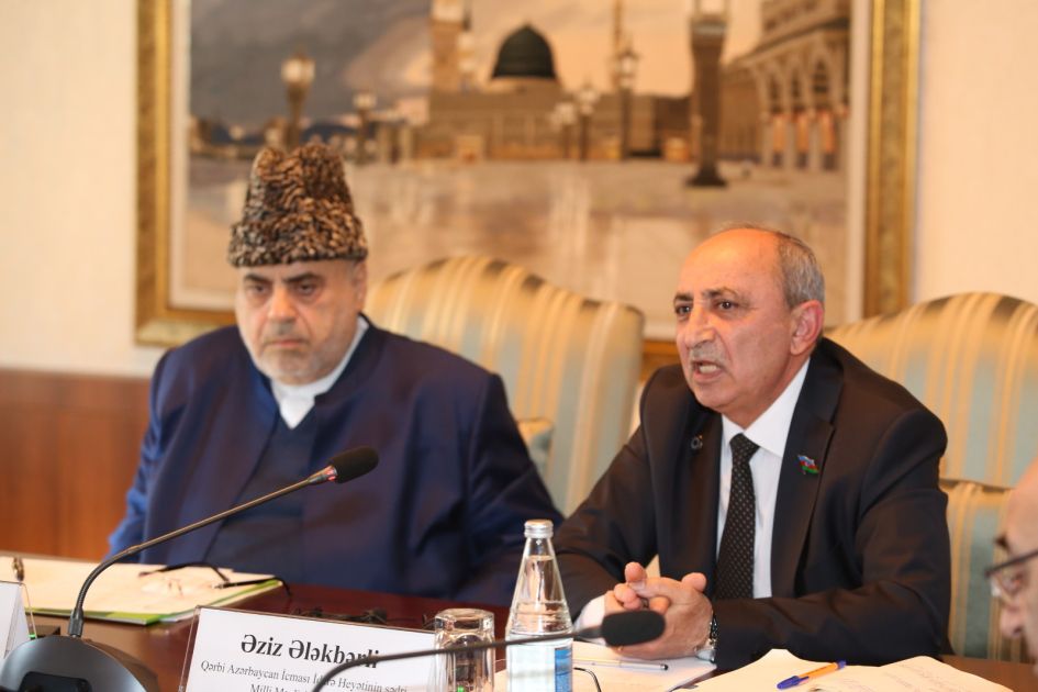 Çıxış edən QMİ-nin sədri şeyxülislam Allahşükür Paşazadə bildirib ki, Qərbi Azərbaycan İcmasının 2022-ci ildə təsis olunması dövlətimizin başçısının uzaqgörən siyasətinin təzahürüdür və soydaşlarımızın doğma yurdlarına qayıdışı dövlət siyasətinin mühüm istiqamətidir. O, Qafqaz Müsəlmanları İdarəsinin beynəlxalq platformalarda Qərbi Azərbaycanla bağlı həqiqətləri mütəmadi gündəmə gətirdiyini diqqətə çatdırıb.