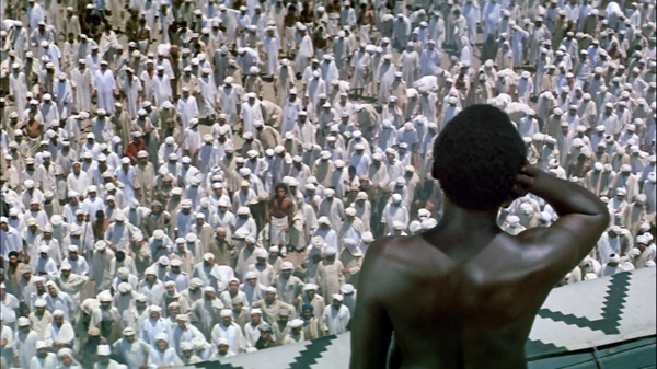 Qəddafi ilə görüşən Akkad ona həmin günə qədər filmin çəkilişlərindən olan səhnələri izlətdirir. Qəddafi müsəlmanların "Allahu Əkbər" nidaları altında Məhəmməd Peyğəmbəri məkkəli müşriklərin atdığı daşlardan qoruyaraq Kəbəyə aparmağa çalışdığı səhnəni seyr edərkən qəfildən "Allahu Əkbər" deyərək yerindən atılır. Otaqda bir qədər dolaşandan sonra Akkada dönüb "Səudiyyə Ərəbistanı niyə etiraz etdi? Bu filmi tamamlamaq lazımdır. Liviyada çəkilişlərə davam edin. Başqa nə lazımdır?" deyir.