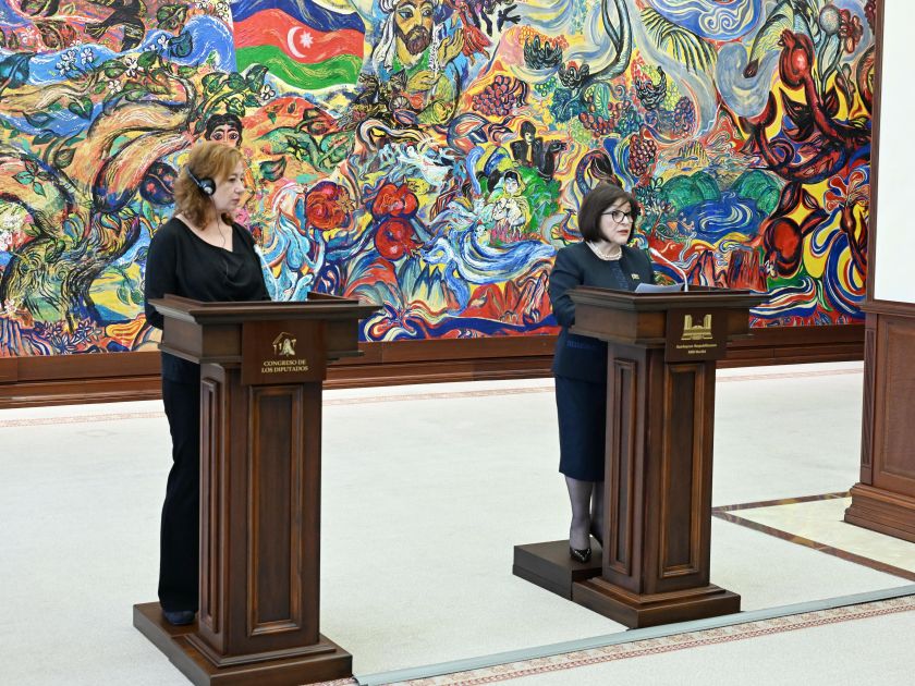 Milli Məclisin sədri Sahibə Qafarova və İspaniya Krallığı Deputatlar Konqresinin sədri Fransina Armenqol ikitərəfli görüşdən sonra mətbuata bəyanatla çıxış ediblər.