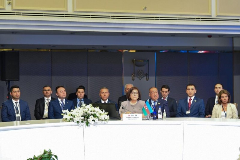 Milli Məclisin sədri çıxışında iştirakçılara Azərbaycanın regionda sülh, sabitlik və davamlı iqtisadi inkişafın təmin olunması istiqamətindəki səyləri haqda da məlumat verib. Bildirib ki, bu gün ölkəmiz 30 il davam etmiş erməni işğalının dəhşətli nəticələrinin aradan qaldırılmasına çalışır. İşğal dövründə dağıdılmış bütün infrastruktur hazırda yenidən bərpa olunur.