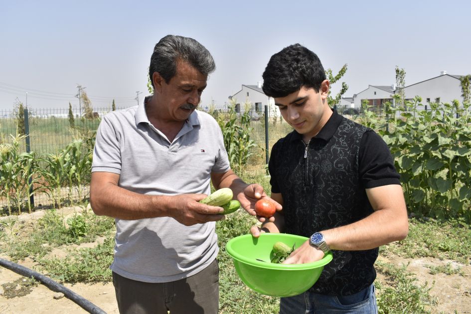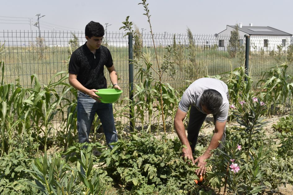 Ailənin başçısı Azər Ağayev bizi salamlayaraq həyətində əkdiyi ağacları və gülləri göstərir: “Torpağın qədrini bilmək lazımdır. Bu torpaqların həsrətini çox çəkmişik. 12 sot həyətyanı sahəmiz var. Bibər, pomidor, xiyar, nanə, reyhan və digər tərəvəzlər, eləcə də meyvə ağacları əkmişik. Doğma torpağı əkib-becərmək, bitkilərə qulluq etmək insana zövq verir”.