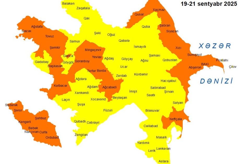 Sentyabrın 21-i səhərədək ölkə ərazisində gözlənilən küləkli hava şəraiti ilə bağlı sarı və narıncı xəbərdarlıqlar verilib.