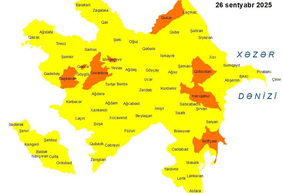 Sentyabrın 26-da Bakıda və Abşeron yarımadasında, eyni zamanda, bəzi bölgələrdə gözlənilən küləkli hava şəraiti ilə bağlı sarı və narıncı xəbərdarlıqlar verilib.