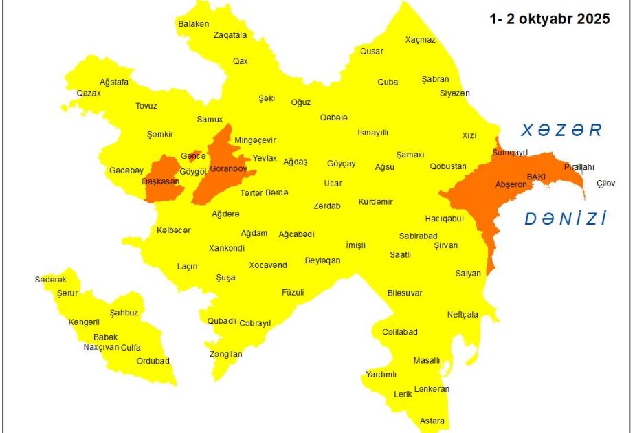 Qeyd olunub ki, Bakıda və Abşeron yarımadasında sarı xəbərdarlığa uyğun olaraq, şimal-qərb küləyi əsir. Oktyabrın 1-də isə küləyin güclənərək narıncı xəbərdarlığa keçəcəyi və saniyədə 20.8-28.4 metr təşkil edəcəyi gözlənilir.