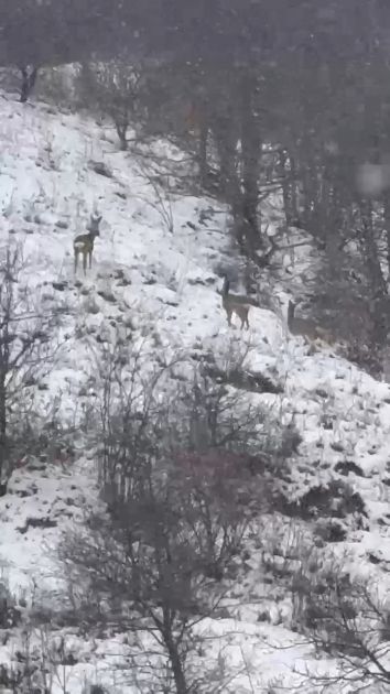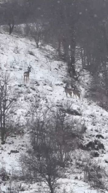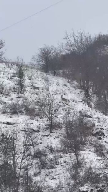 Laçın təbiətinin qış gözəlliyi: Dağ yamaclarında yem axtaran cüyürlər FOTO VİDEO